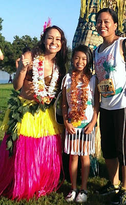 we jogged through the finish line. and she was happy to get her hula girl medal.